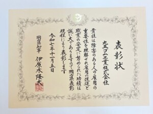 2025年11月5日(水)に行われた「障害者ワークフェア・インおかやま」の中で、当社が『岡山県障害者雇用優良事業所』として岡山県知事表彰をいただきました。